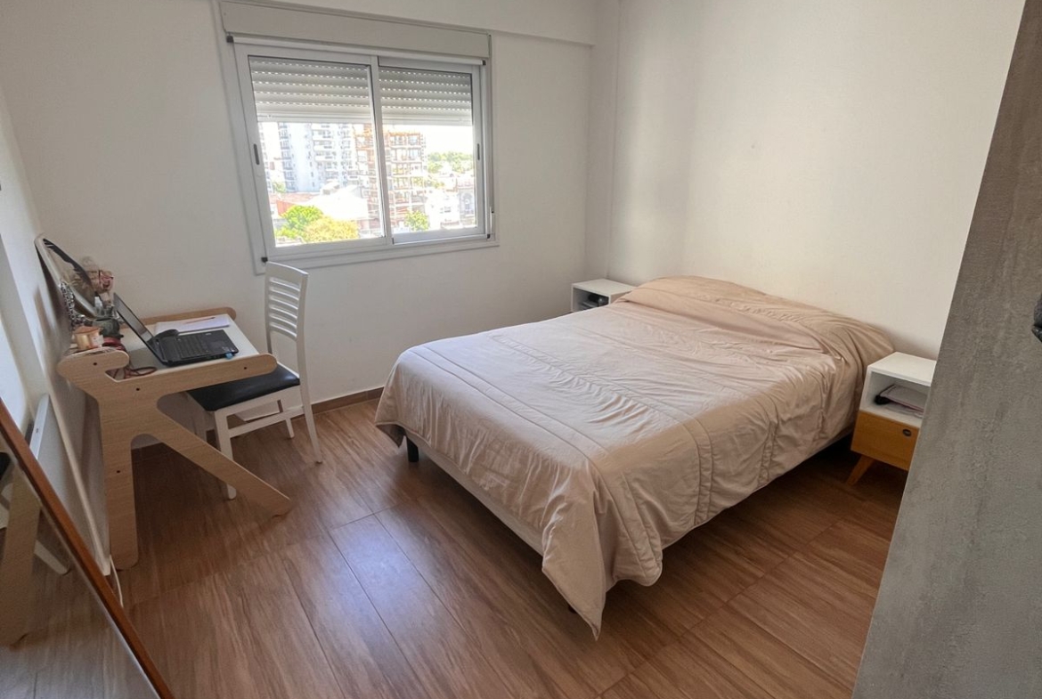 La unidad cuenta con dos dormitorios y dos baños, con living, comedor y cocina integrados, logrando un espacio funcional y moderno. Dispone además de un balcón de generosas dimensiones con lavadero cubierto.