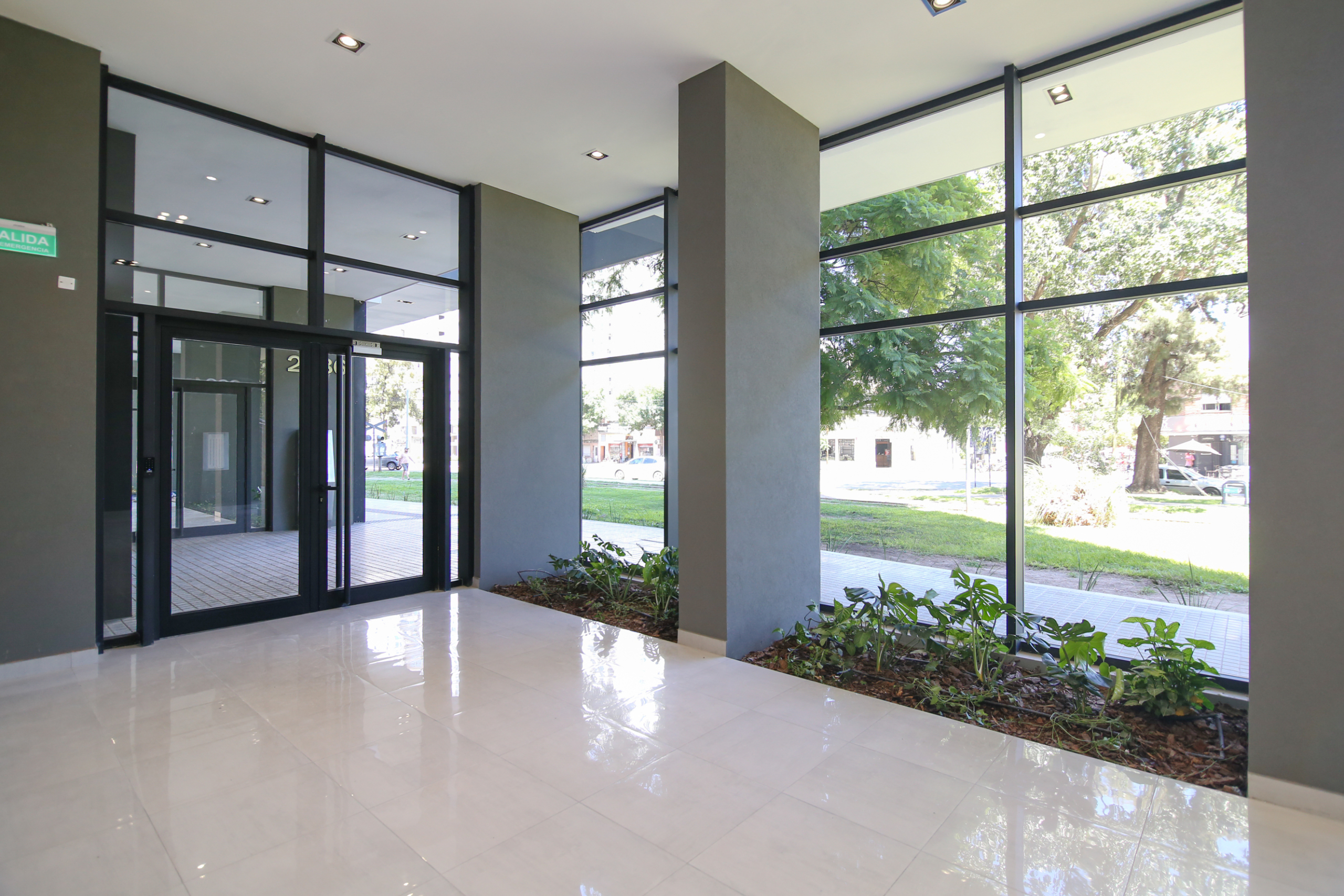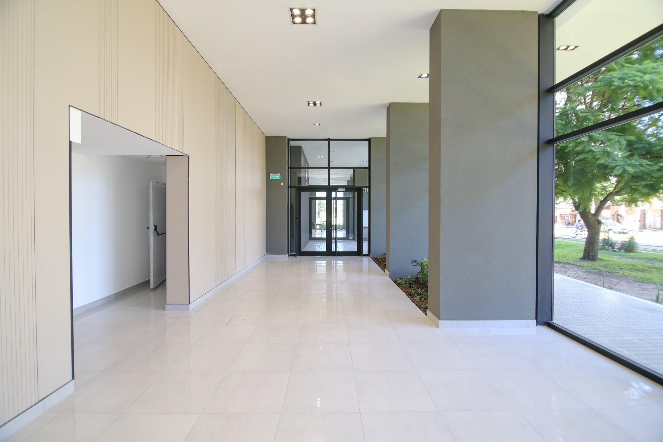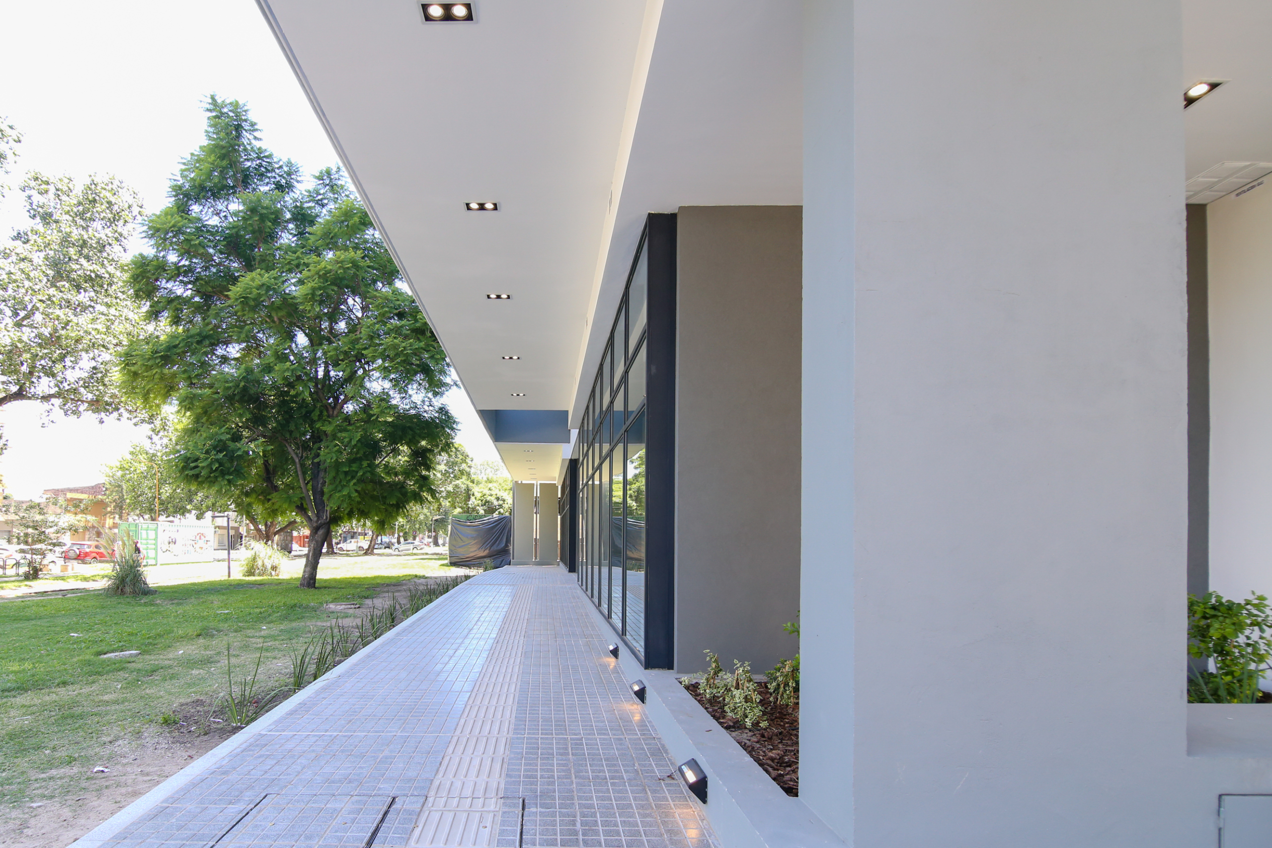 El complejo cuenta con una plaza central elevada, de uso exclusivo para residentes y locales comerciales, aportando un espacio verde único en altura que jerarquiza el conjunto.